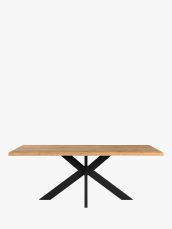 Aktionstisch Spin in vollmassiver Wildeiche geölt oder bianco geölt mit einem pulverlackierten Stahluntergstell in schwarz.