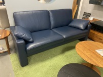 Schmale Armlehnen mit echtem Nubukleder-Besatz. Sitzhöhe ca. 48 cm, Sitztiefe 58 cm